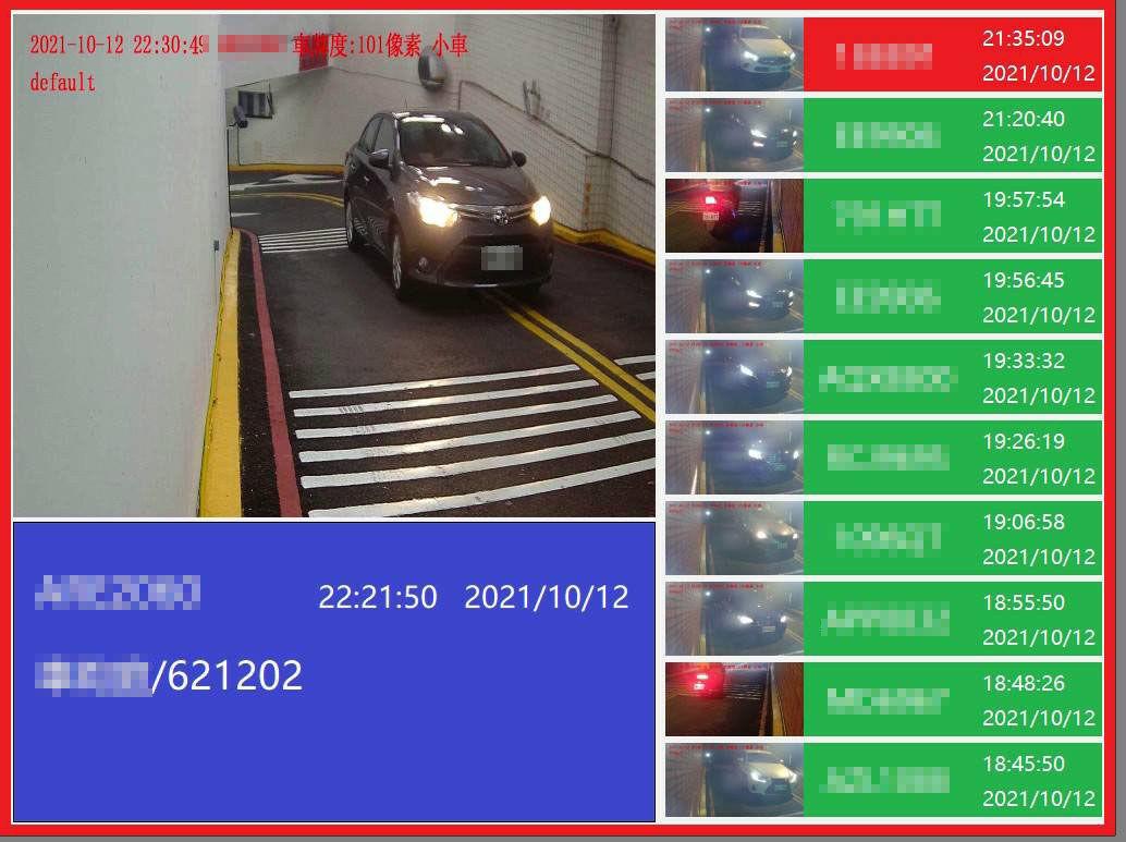 若有未登記的外來車輛欲闖入,軟體將發出警示語音並以紅底色醒目顯示,並拍照記錄其入/出場時間