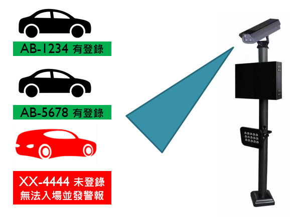 本系統需搭配本公司之車牌辨識系統共同使用,可為車牌辨識進出管制系統增加偵測違規 (未登記) 車輛偵測的功能